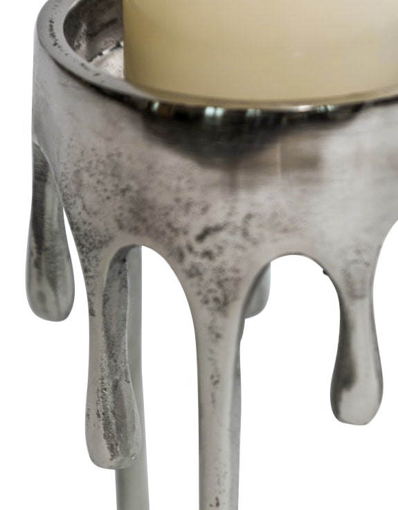 Enhance your home decor with our Medium Raw Nickel 'Dali' Drip Candle Holder. Crafted with elegant design and intricate details, this candle holder is also available in a larger size and silver for versatility. Complete the look with our matching side table and coffee table. Elevate your space with style.