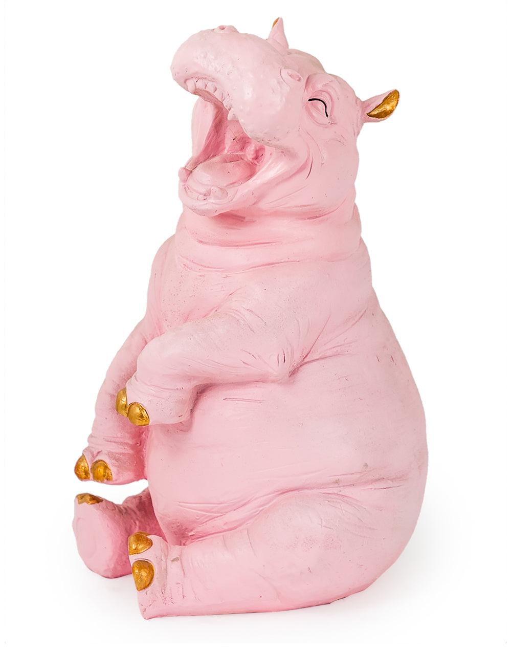 Experience pure joy with our Pale Pale Laughing Hippo. This one-of-a-kind figurine features intricate gold detailing, adding a touch of elegance to its playful nature. Bring a smile to your face every day with this charming and unique piece. Pure happiness in pale blue.