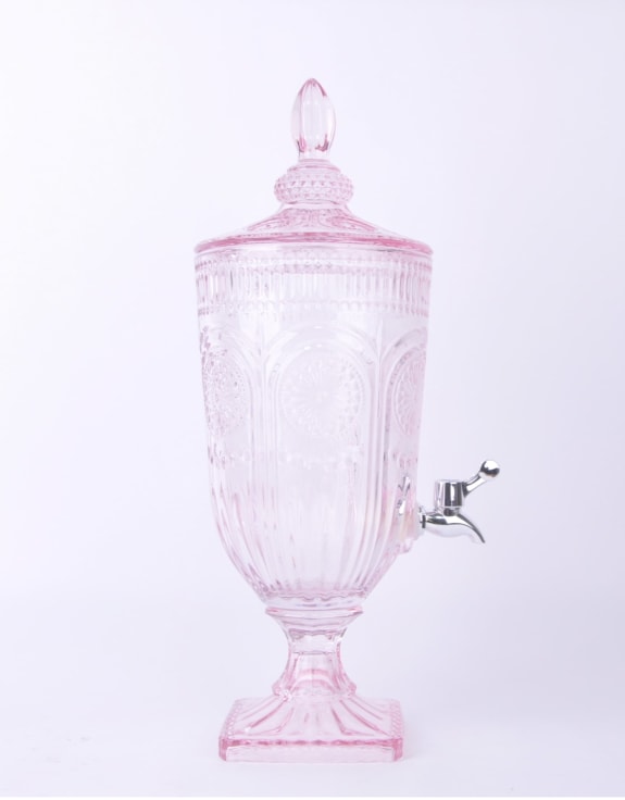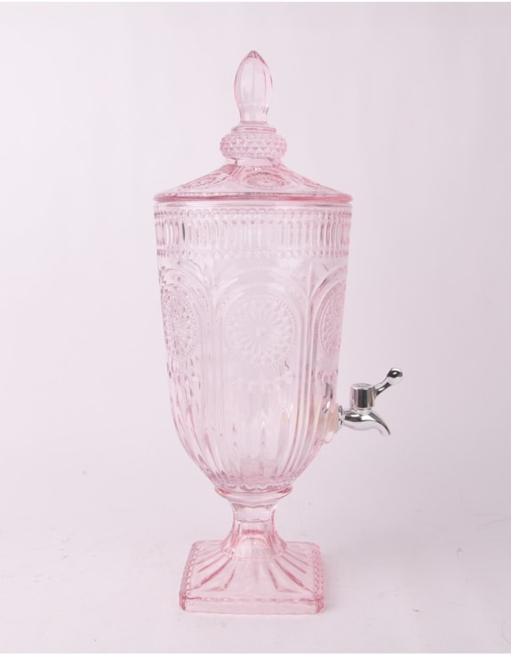 This Pink Patterned Glass Drinks Server is the perfect addition to any occasion with its 3 litre capacity and sleek chrome tap. Serve beverages with elegance and style, without worrying about spills or messes. Upgrade your hosting game with this must-have server.