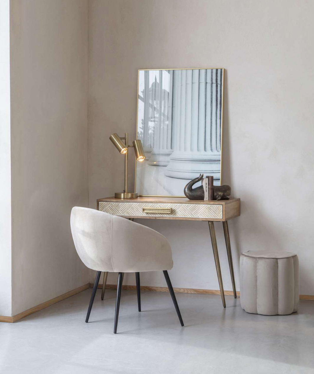 Elevate your space with the luxurious Serena Scallop Taupe Footstool. The scallop edge design, sumptuous velvet upholstery, and elegant matching piping and button detailing add a touch of sophistication to any room. Versatile and practical, this footstool can also be used as a side table or extra seating. Available in royal blue and taupe.