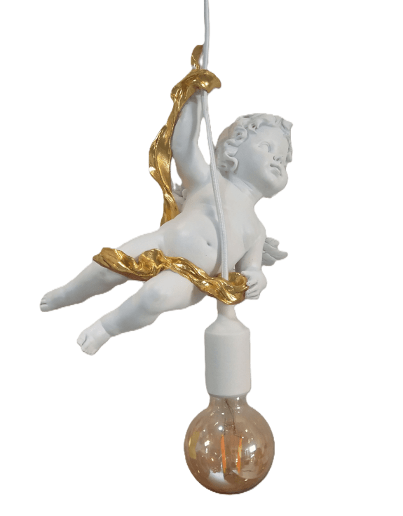 Elevate your space with our White & Gold Cherub Ceiling Pendant. With its elegant cherub design, this pendant combines classic and modern elements to create a stunning statement piece. Made with high-quality materials, it adds a touch of sophistication and luxury to any room.