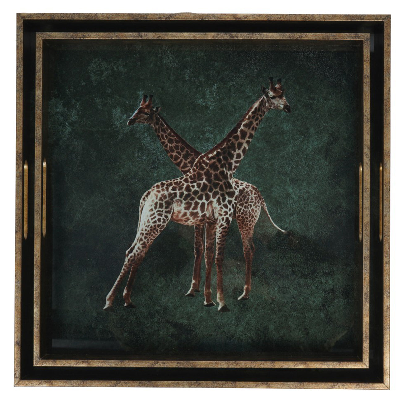 Add a touch of sophistication to your home with our Giraffe Decorative Nesting Trays. These trays feature beautifully detailed giraffe artwork, protected by a durable glass surface. Perfect for adding a touch of wildlife-inspired artistry to any room. Framed with an antique gold textured edge, these trays combine style and practicality. Perfect for serving drinks, displaying decorative pieces, or organising essentials, their nesting design allows for compact storage when not in use. Large Tray 45x45x4.5cm, Small Tray 40x40x4.5cm