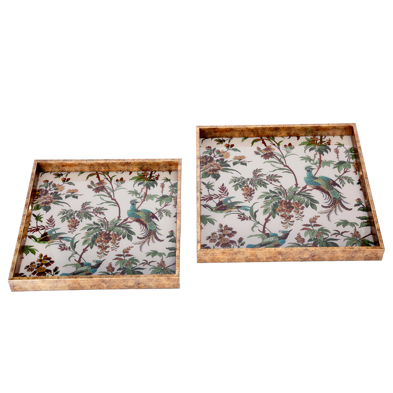 Transform your home with this exquisite set of 2 Laura Ashley trays showcasing the enchanting Attleton print. Featuring exotic birds nestled amongst lush foliage and delicate florals, this archived design brings timeless sophistication to any space. The antique gold edging imparts a subtle luxury that elevates both everyday moments and special occasions. Whether you're serving refreshments or creating an elegant display, these trays marry functionality with refined aesthetics, infusing your interiors with nature-inspired beauty and understated glamour.