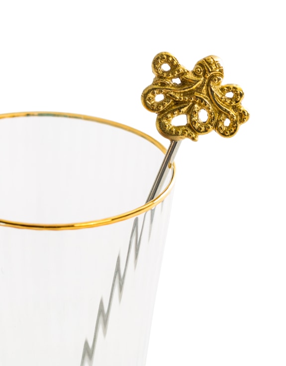 Add some whimsy to your next cocktail with this set of 4 Gold Octopus Drinks Stirrers. Each 20cm stirrer is made from brass and steel, with a decorative octopus perched on top. Stir things up in style with these quirky and playful additions to your barware collection.