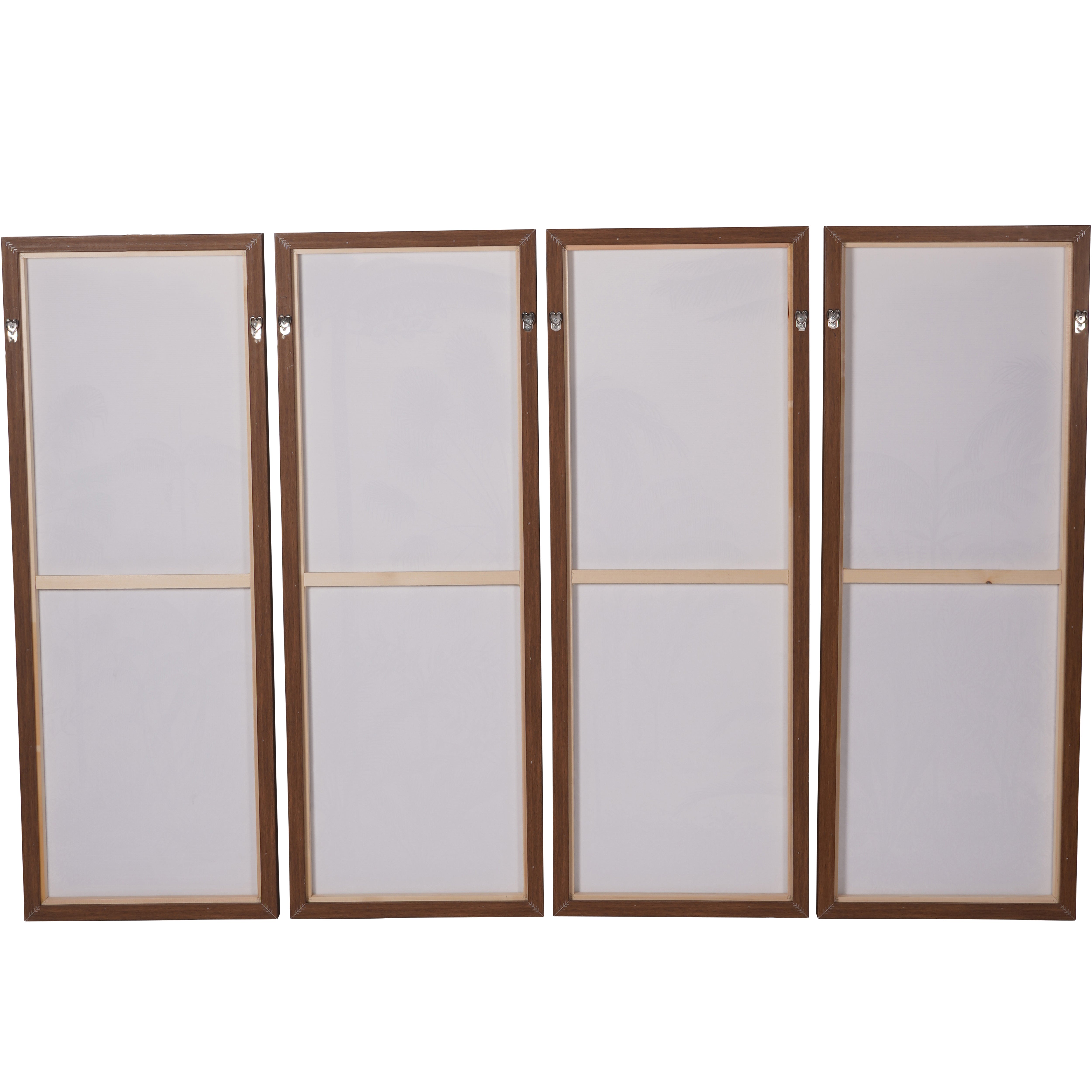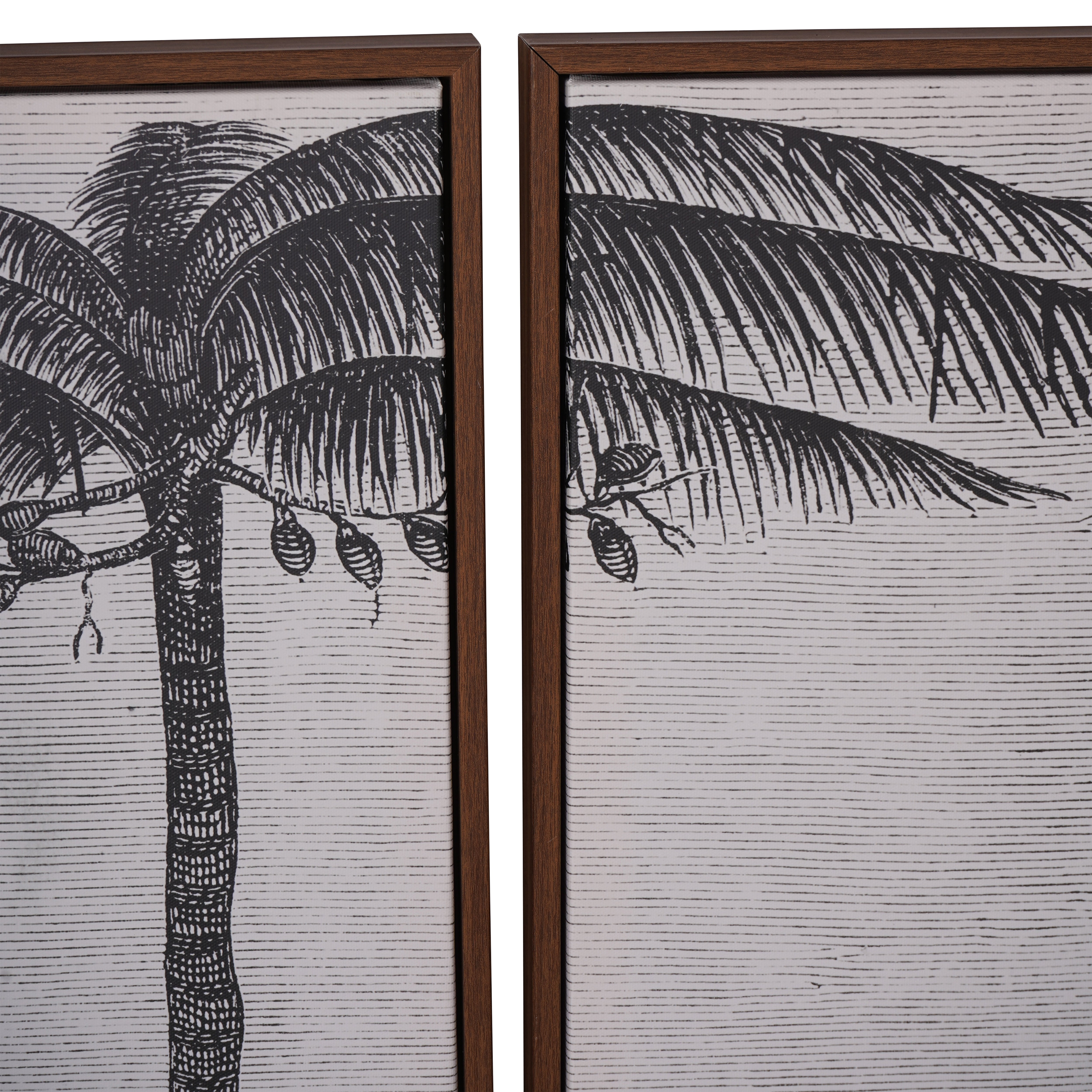 Enhance any space with our high-quality set of four Tropical Palm Framed Canvas. Featuring a rustic wooden frame and monochromatic print, these ready-framed pieces create a stunning jungle scene that exudes elegance and tranquility. A timeless addition to your decor that brings the beauty of nature into your home.