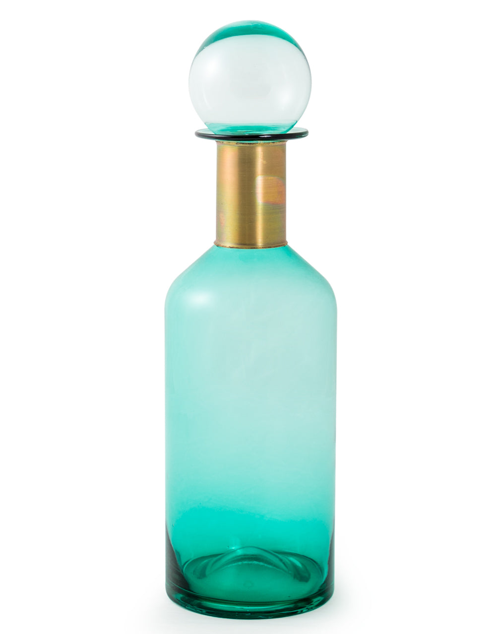 Tall Teal Glass Apothecary Bottle with Brass Neck