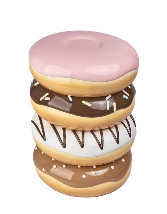 Introducing our Stack of Doughnuts Side Table / Stool, the perfect blend of whimsy and functionality. Made with strawberry, chocolate, and toffee stacked donuts, this piece adds a playful touch to any space. Use it as a side table or stool, a delicious addition to your home decor!