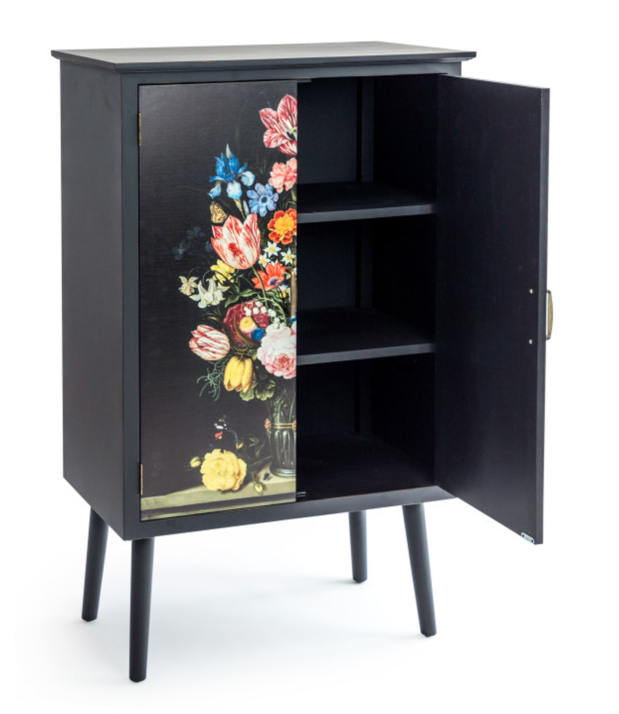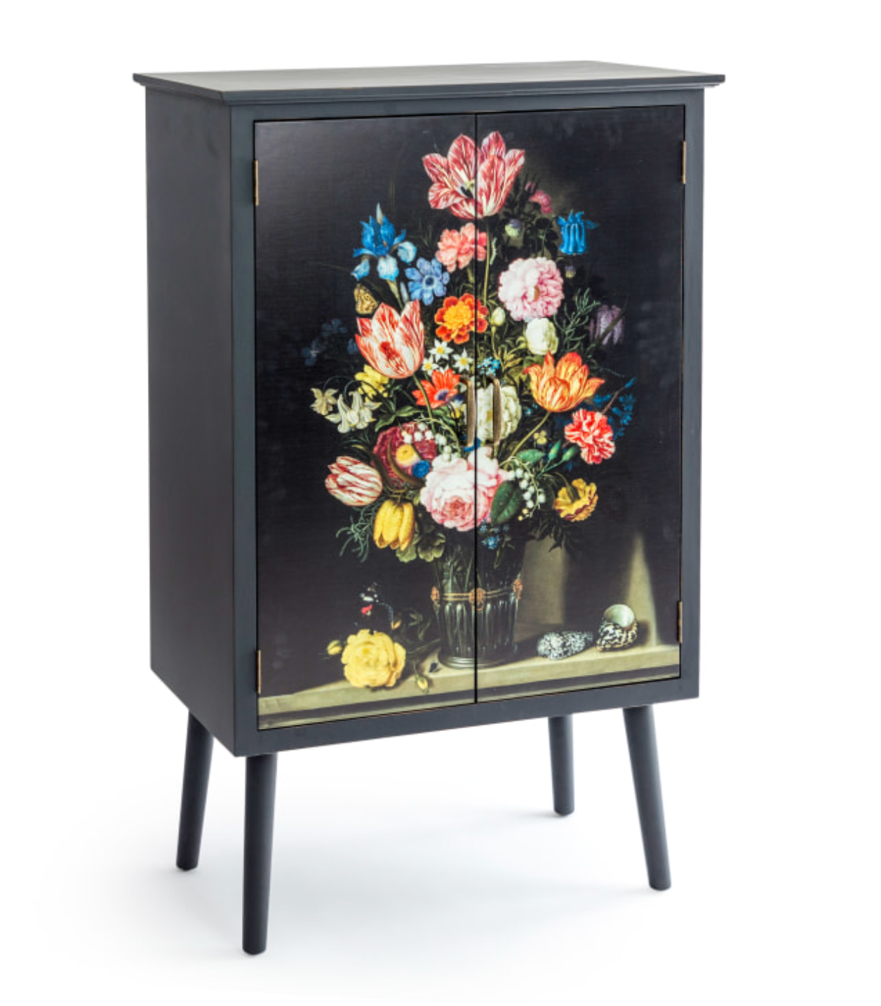 Expertly designed and crafted, our Tall Floral Bouquet Boho Side Cabinet adds a touch of elegance to any space. With 2 internal shelves and removable legs, it provides ample storage while its black cabinet with floral print doors adds a stylish and unique touch. Perfect for boho or eclectic interiors.