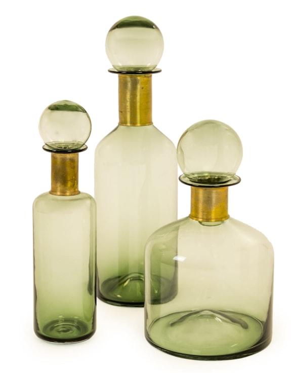 Tall Green Glass Apothecary Bottle with Brass Neck