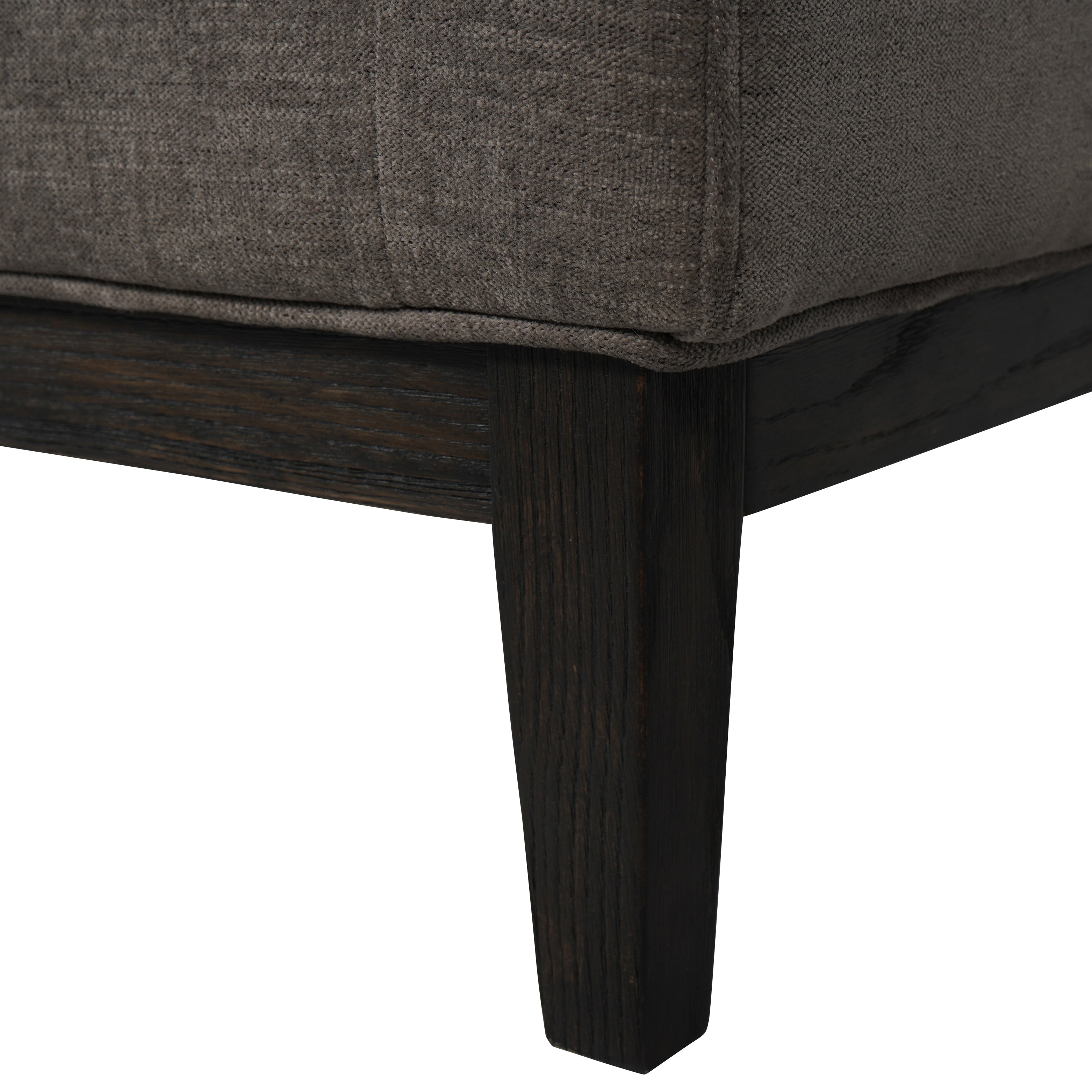 The Tallow Buttoned Armchair offers both style and comfort. Upholstered in a beautiful woven fabric, this armchair comes in warm grey and features deep buttoning and piped detailing. With a generous deep seat cushion and solid wooden frame, it's perfect for lounging. Requires simple self assembly.