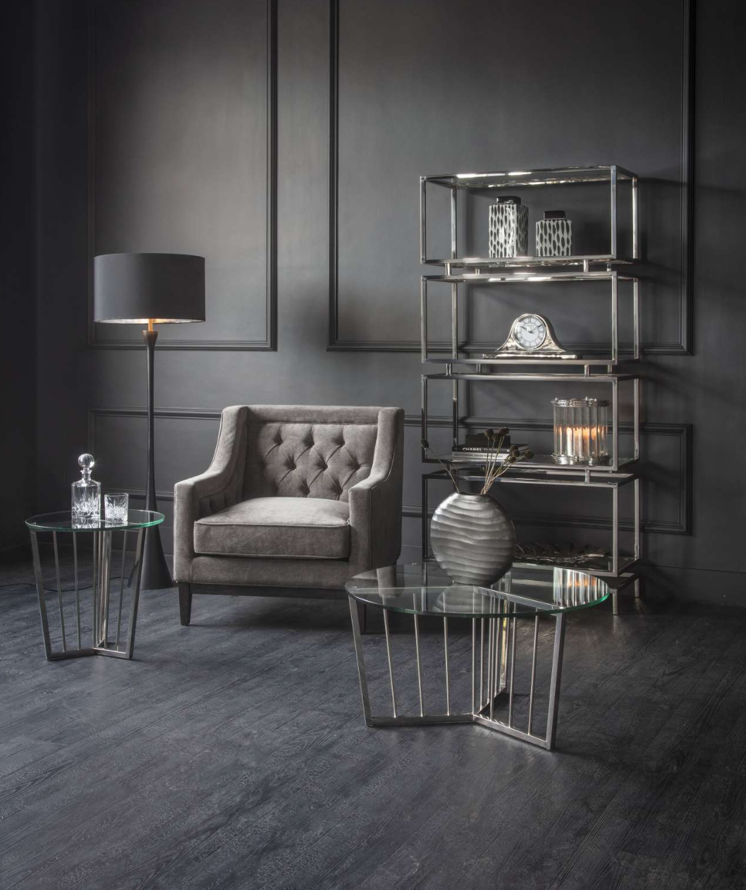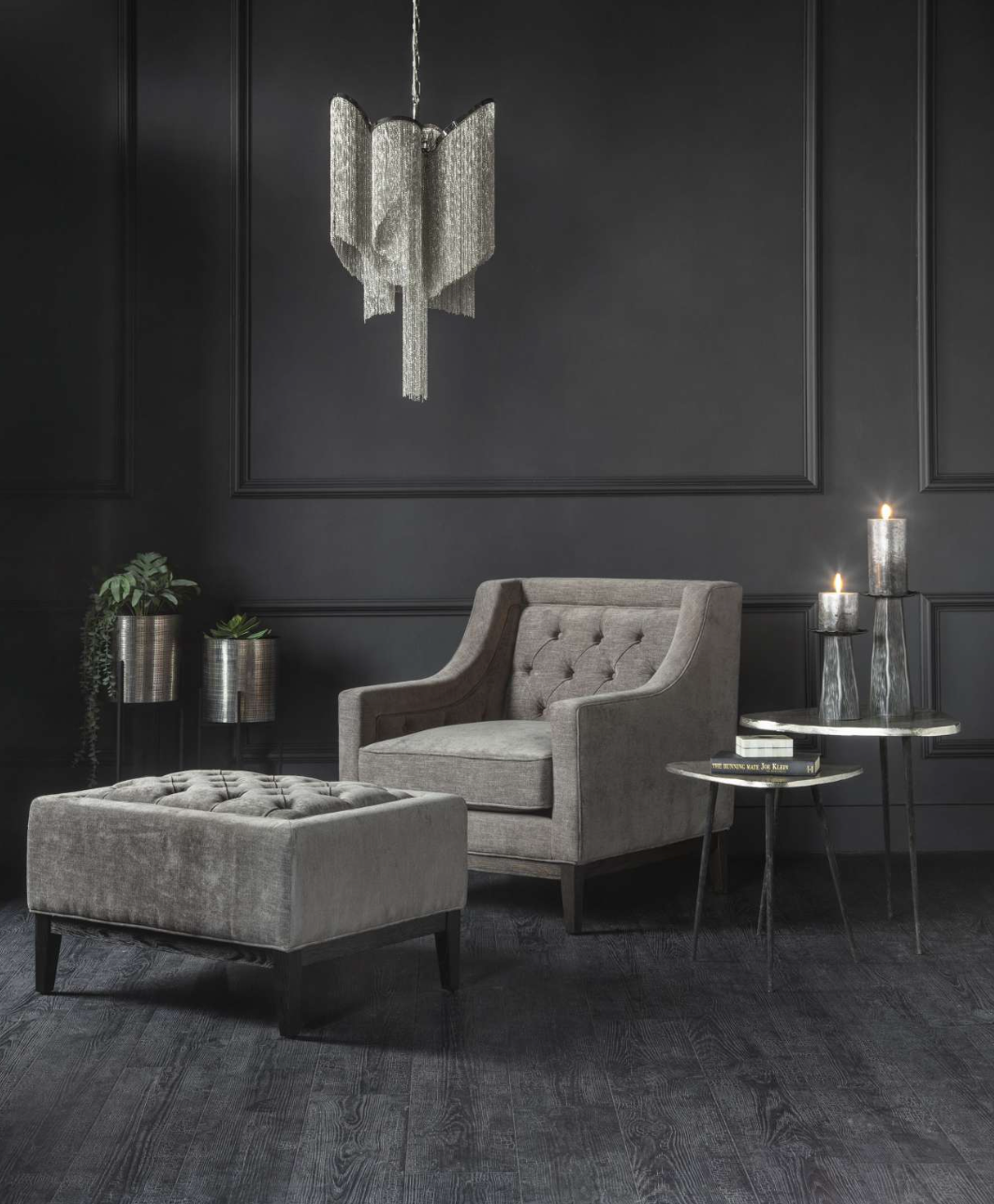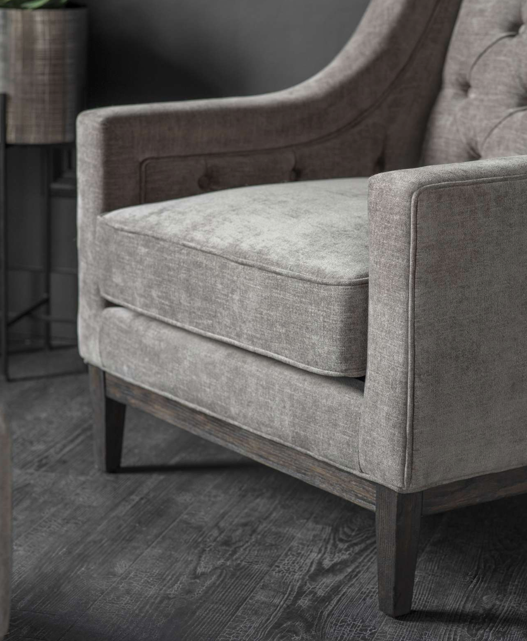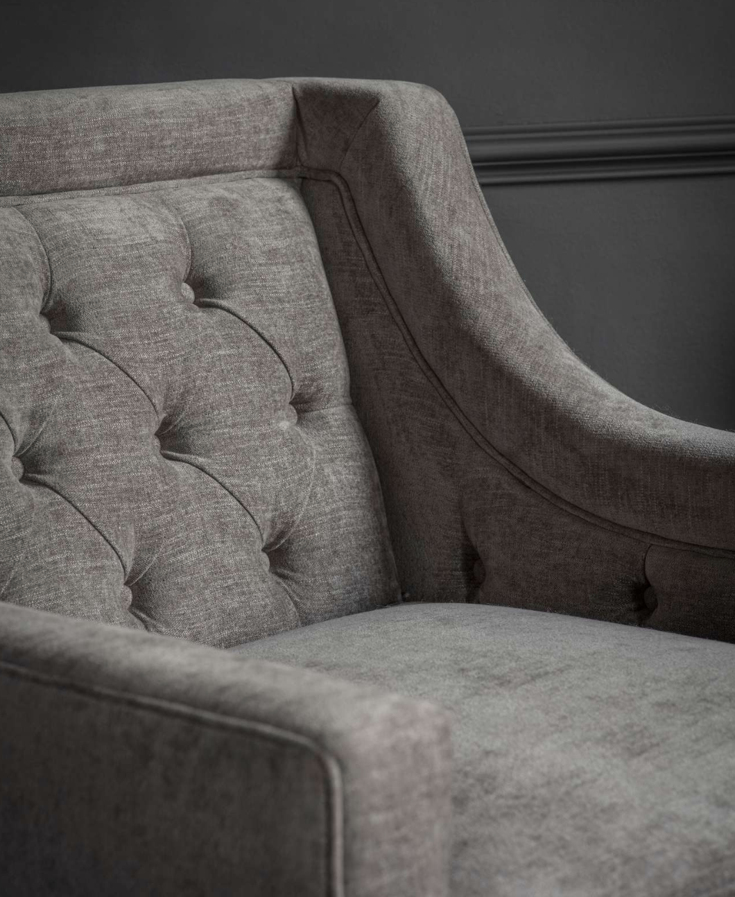 Tallow Buttoned Armchair in Warm Grey Fabric