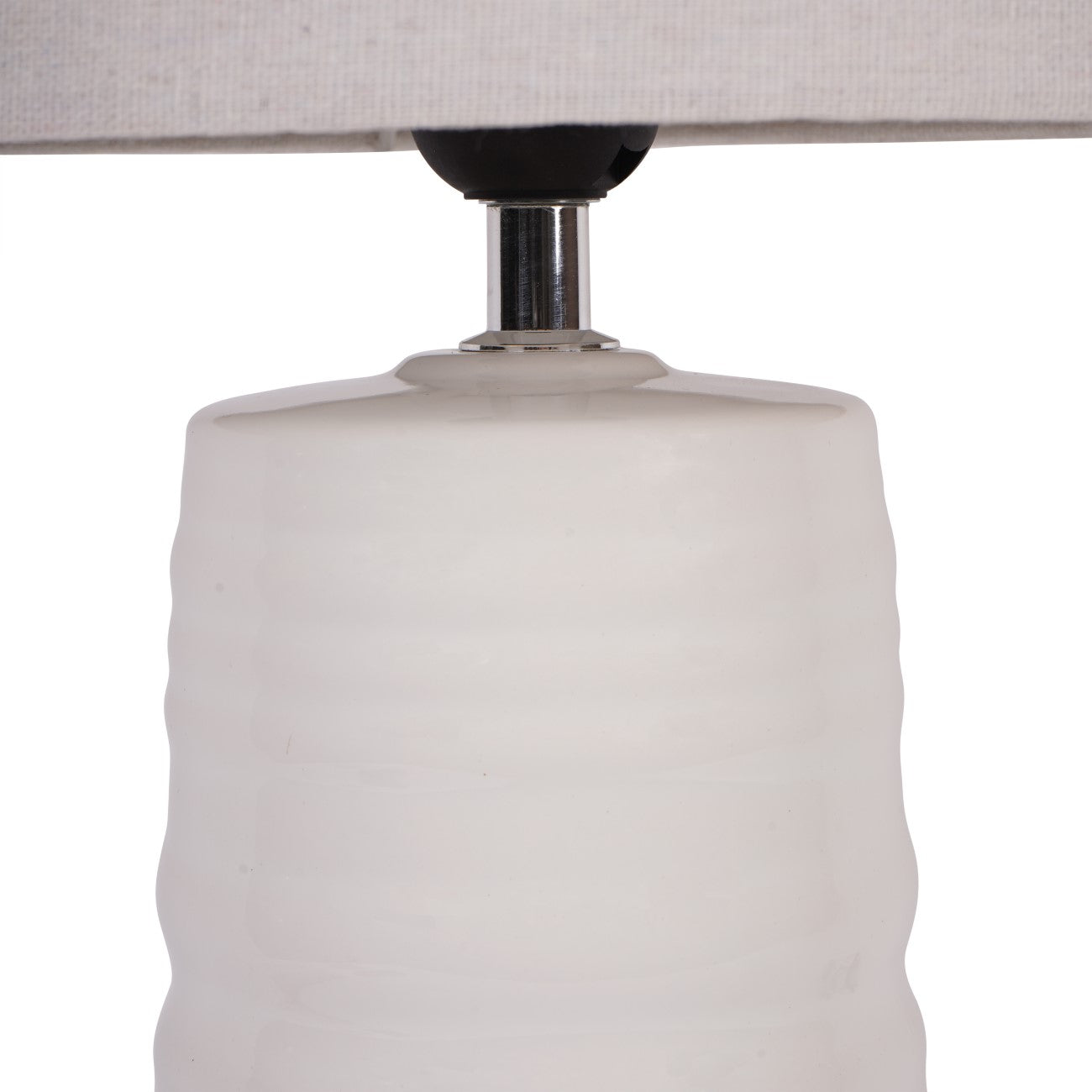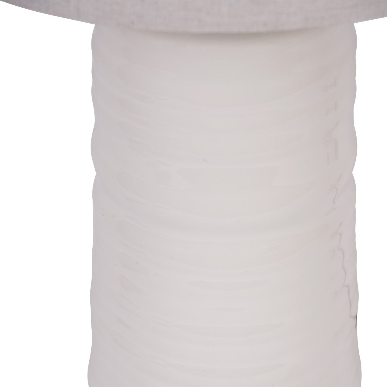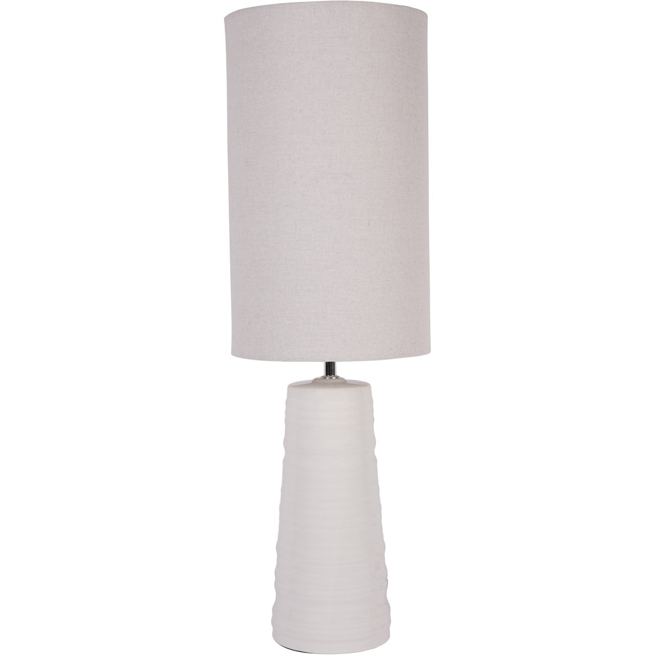 The Trevino White Ceramic Table Lamp offers a sophisticated touch with its glazed ceramic base featuring a ribbed, tapered design that adds artisanal texture and warmth. Complemented by a tall, neutral fabric shade, this lamp balances earthy charm with modern elegance. Its compact size makes it perfect for sideboards, console tables, or bedside use, while the standard toggle switch ensures easy operation. Measuring 24 x 24 x 75 cm, it is an ideal choice for enhancing refined interiors with subtle sculptural presence.